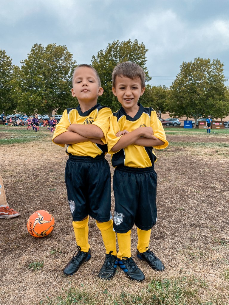 Before I had kids I swore to myself I would never become a soccer mom. Yet, I got married to a soccer coach and here I am. The boys started soccer this past week and they were so excited until their first game this past weekend.
